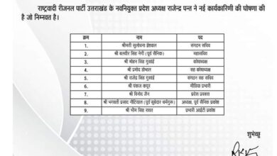 देेहरादूून : राष्ट्रवादी रीजनल पार्टी के उत्तराखंड प्रदेश अध्यक्ष राजेंद्र पंत ने पार्टी के संगठन सचिव और कोषाध्यक्ष सहित 9…