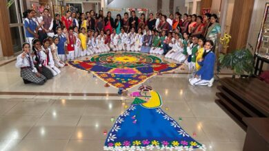 सीडीएस पब्लिक स्कूल में बच्चों ने बनाई मनमोहक रंगोली।