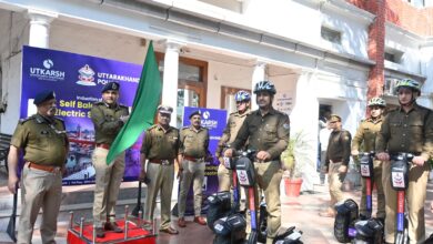 डीजीपी ने हरी झंडी दिखाकर 04 सेल्फ बैलेंसिंग इलेक्ट्रिक स्कूटरों को हरिद्वार किया रवाना।
