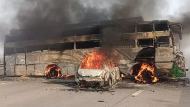 जबरदस्त हादसा, बस और कार में लगी आग, पांच लोगों की जल कर मौत।