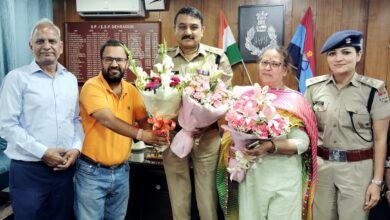 डूंगा क्षेत्र में हुई घटना के त्वरित खुलासे पर पीडित परिवार ने एसएसपी से की शिष्टाचार भेंट।