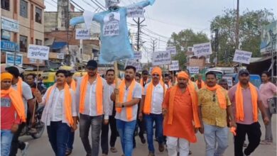 हिन्दू युवा वाहिनी ने किया ओवैसी का पुतला दहन।