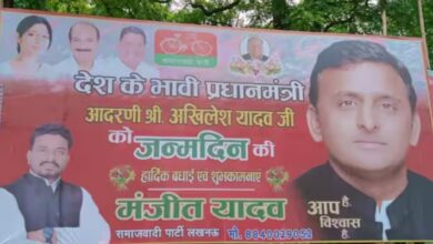 अखिलेश यादव के जन्मोत्सव पर कार्यकर्ताओं ने लगाए भावी प्रधानमंत्री के होर्डिंग।