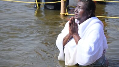 राष्ट्रपति द्रौपदी मुर्मू ने त्रिवेणी संगम में लगाई पुण्य की डुबकी।