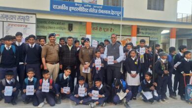 सड़क सुरक्षा का पाठ पढ़ाने छात्र- छात्राओं के बीच पहुँची दून पुलिस।