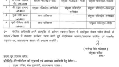 देहरादून : चार आईएएस अधिकारियों के तबादले करते हुए उन्हें नई नियुक्तियां दी हैं। शासन द्वारा जारी आदेश के अनुसार…