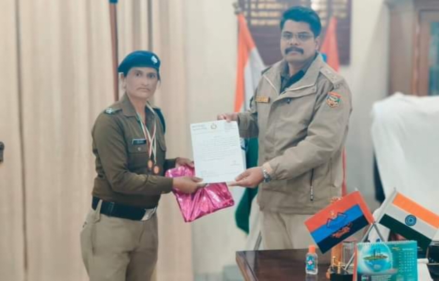 देहरादून : 19वीं उत्तराखण्ड प्रादेशिक अन्तर्जनपदीय वाहिनी पुलिस एथलेटिक्स/खो-खो/साईकिलिंग एवं प्रथम मास्टर एथलेटिक इवेंट- 2023 दिनांक 14/12/2023 से 17/12/2023 तक 40वी वाहिनी पी0एस0सी0, हरिद्वार में आयोजित प्रतियोगिता में जीआरपी, उत्तराखण्ड से थाना जीआरपी हरिद्वार में नियुक्त महिला कानि0 ऊषा साहनी द्वारा 02 सिल्वर मेडल क्रमशः 100 मीटर व 200 मीटर दौड़ मे जीतने पर अजय गणपति कुंभार, पुलिस अधीक्षक रेलवेज उत्तराखण्ड द्वारा आज दिनांक 20/12/2023 को पुलिस मुख्यालय जीआरपी कार्यालय में उक्त महिला आरक्षी को प्रशस्ति पत्र से सम्मानित करते हुए बधाई दी गयी।