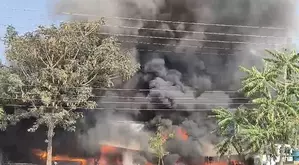 पटाखा बाजार में लगी भीषण आग, 65 दुकानों सहित कई बाइक जलकर राख।