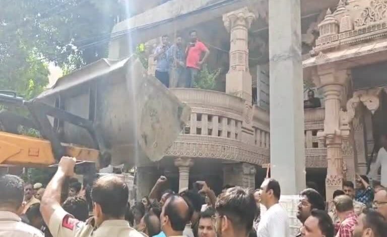 40 साल पुराने जैन मंदिर की दीवार तोड़ी, समाज में आक्रोश।