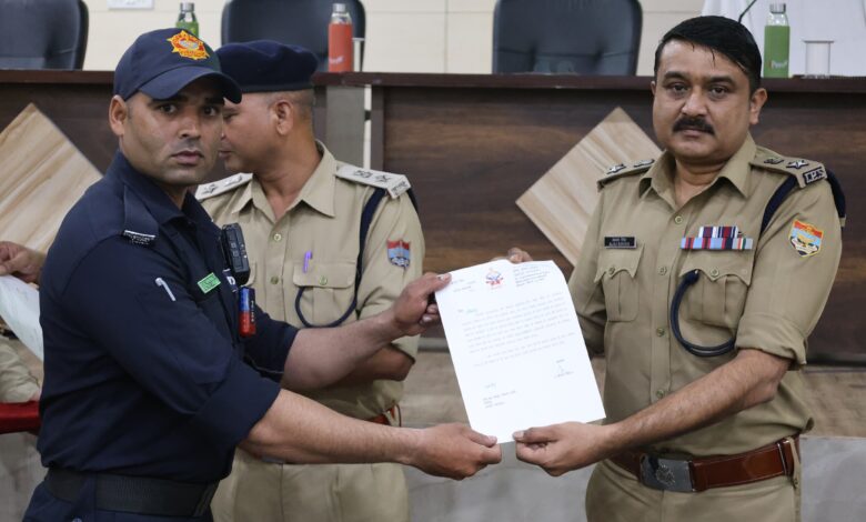 देहरादून : आज दिनांक 15-10-2025 को वरिष्ठ पुलिस अधीक्षक देहरादून द्वारा पुलिस लाइन देहरादून में पुलिस कर्मियों का सैनिक सम्मेलन लिया गया, सम्मेलन के दौरान एसएसपी देहरादून द्वारा उपस्थित पुलिस कर्मियों से उनकी समस्याओं की जानकारी लेते हुए उपस्थित अधिकारियों को उनके त्वरित निस्तारण के निर्देश दिये गये। गोष्ठी के दौरान एसएसपी देहरादून द्वारा उत्कृष्ठ कार्य करने वाले 76 पुलिस अधि0/कर्म0 को प्रशस्ति पत्र देकर सम्मानित किया गया, साथ ही भविष्य में भी इसी प्रकार अपने कर्त्तव्यों का निर्वहन करने के लिये प्रेरित किया।