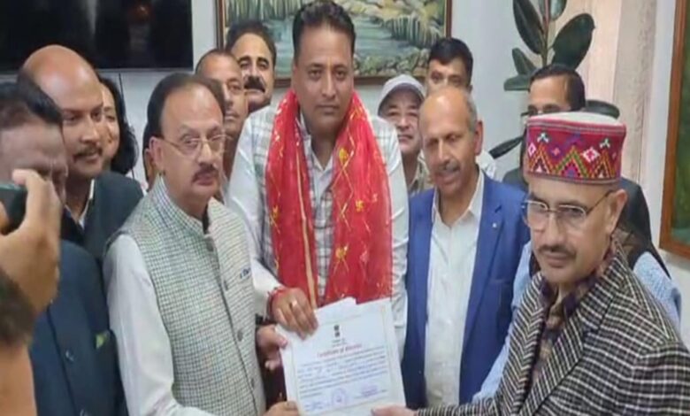 शिमला : हिमाचल प्रदेश से राज्यसभा के लिए कांग्रेस नेता अनुराग शर्मा का निर्विरोध चयन हो गया है. विधानसभा सचिवालय की ओर से आधिकारिक तौर पर ‘सर्टिफिकेट ऑफ इलेक्शन’ सौंप दिया गया है. राज्यसभा चुनाव के लिए विधानसभा सचिवालय को केवल एक ही नामांकन प्राप्त हुआ था।