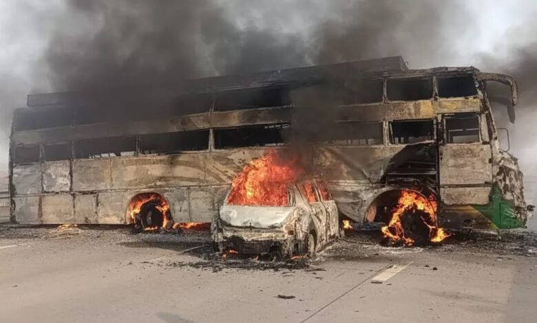 जबरदस्त हादसा, बस और कार में लगी आग, पांच लोगों की जल कर मौत।