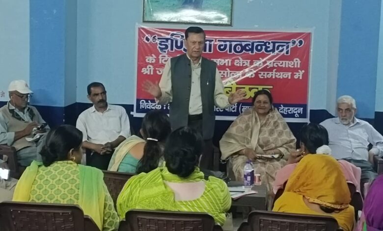 देहरादून : आज इण्डिया गठबंधन के टिहरी लोकसभा क्षेत्र के प्रत्याशी जोतसिंह गुनसोला के समर्थन में डीएलरोड़ स्थित डॉ भीम राव अम्बेडकर धर्म शाला सभागार में कामरेड अनिल गोस्वामी की अध्यक्षता में सम्पन्न हुआ ।